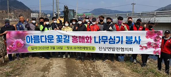 광양시 진상면 발전협의회는 진상 수어천 제방 도로변 10km 구간 일대에 봄맞이 홍매화 식재 행사를 가졌다고 16일 밝혔다.