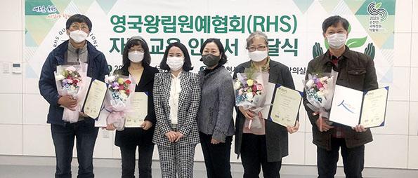 순천시는 영국왕립원예협회(Royal Horticultural Society, 이하 RHS) 자격교육 인증서 전달식을 지난 12일 갖고 2020년도 합격자 4명에게 인증서를 전달했다고 밝혔다.
