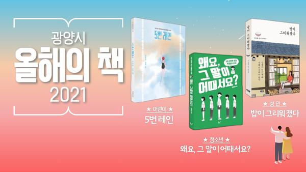 광양시가 2021년 올해의 책으로 ▲5번 레인(은소홀, 문학동네) ▲왜요, 그 말이 어때서요(김청연, 동녘) ▲밥이 그리워졌다(김용희, 인물과사상사) 등 3권을 선정했다.