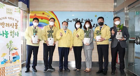 광주시교육청이 5일 제76회 식목일을 맞아 탄소중립 실현, 녹색환경 구축, 화훼 소비 촉진, 직원 간 소통 강화 및 정서적 안정 도모를 위해 ‘공기정화 반려식물 나눔 행사’를 개최했다.