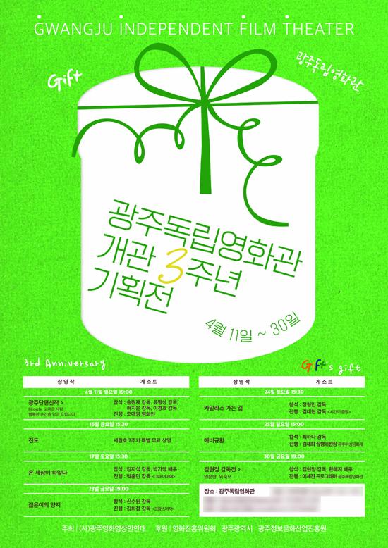 광주독립영화관은 11일부터 30일까지 신작 등 독립영화 10편을 상영하는 ‘개관 3주년 기획전’을 펼친다고 밝혔다.
