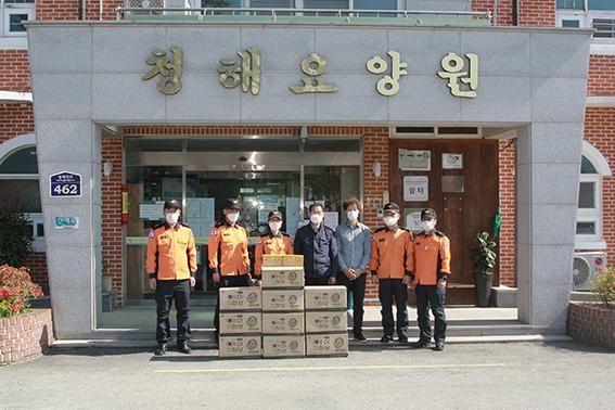 완도소방서는 지난 8일 관내 요양시설 완도전문요양원과 청해요양원에 방문해 쌀 12포대, 전복음료 10박스를 전달했다.