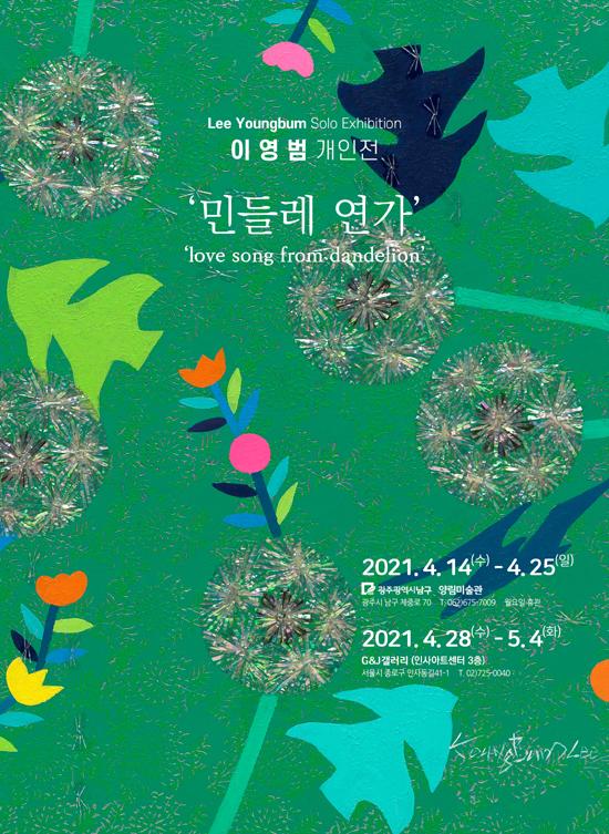 ‘민들레 연가’라는 타이틀로 14부터 오는 25일까지 광주시 남구 양림미술관과 오는28일부터 5월 4일까지 서울시 종로구 G&J 갤러리에 마련된다. 강한 생명력으로 상징되는 민들레를 작업의 주요 테마로 삼아온 작가는 평화와 사랑과 치유의 메시지를 품고 바람에 날려 새로운 생명을 탄생시키는 민들레처럼 작품을 통해 희망의 메시지를 전달해왔다.