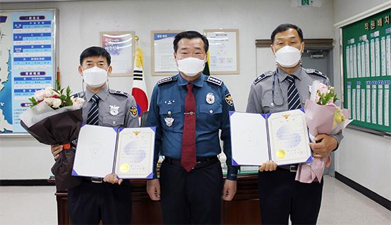 해남경찰서(서장 문병조)는 13일 지역사회 코로나19 예방에 기여한 해남군청 소속 청원경찰 민모씨와 이모씨에게 감사장을 수여했다.