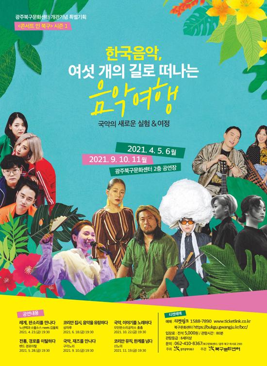 북구문화센터의 대표적인 공연 브랜드로 자리 잡을 ‘콘서트 인 북구’는 올해 첫 기획 시리즈로 ‘한국음악, 여섯 개의 길로 떠나는 음악여행’을 준비했다.