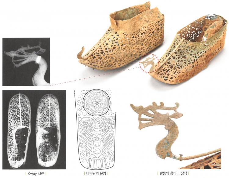 특히 발등 부분에 부착된 ‘용머리 장식’은 현존하는 삼국시대 금동신발 중 유일한 사례로 주목을 받아왔다.
