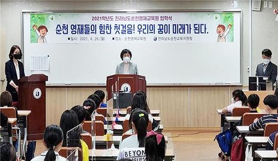 이용덕 순천교육장은 “안전하고 평화로운 교육환경에서 자신의 재능을 키우고 친구들과 협업하여 탐구에 집중할 수 있도록 지원하겠다”면서 “우리 지역 순천에서 성장한 아이들이 세계를 품을 수 있는 인재로 우뚝 서길 기대한다”라고 전했다.
