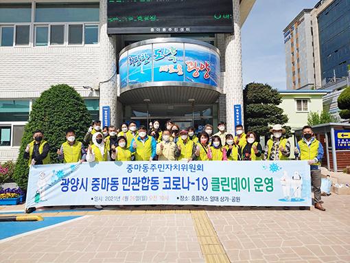한편, 광양시는 4월 16일부터 75세 이상 시민에 대해 백신 1차 접종을 시작했으며, 중마동은 4월 26~28일 3일간 1차 접종을 시행했다.