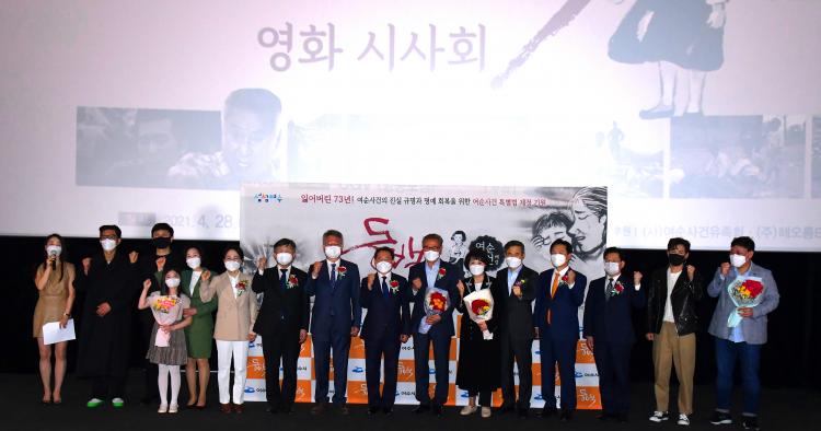 시사회는 권오봉 여수시장과 국회의원, 시의원, 주연 박근형 배우와 신준영 감독, 여순사건 유족회와 시민추진위원회, 영화 관계자 등 90여 명이 참석했다.