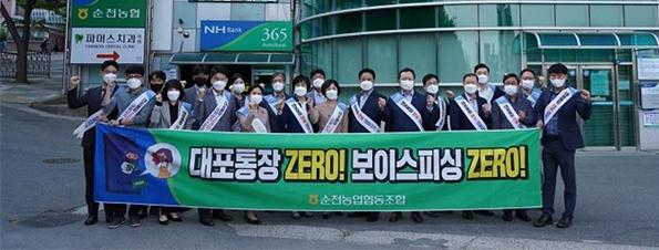 순천농협은 전기통신금융사기 피해예방 및 대포통장 근절을 위한 캠페인을 지난 4월 29일 순천농협 파머스마켓 인근 거리에서 펼쳤다.