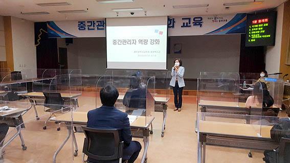 광주동부교육지원청이 지난 3일 조직의 경쟁력을 높이고 적극적으로 일하는 공직문화 조성을 위해 장학사 및 일반직 6급으로 이뤄진 각 과 팀장을 대상으로 ‘중간관리자 역량 강화 교육’을 실시했다.