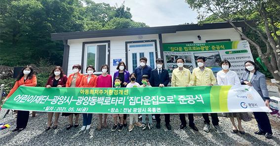 초록우산어린이재단 전남지역본부와 광양동백로타리클럽은 광양시 옥룡면 한부모가족의 자녀들을 위해 추진한 ‘집다운 집으로’ 집짓기 준공식을 가졌다.