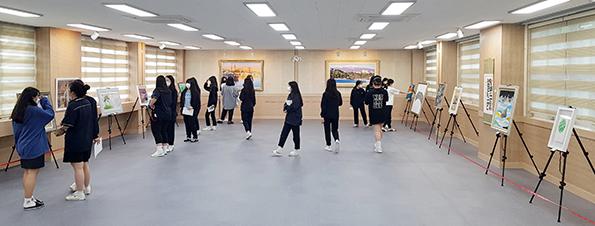 20일 서강고에 따르면 코로나19 장기화로 침체의 늪에 빠진 전시문화의 대안으로 지난 17일부터 학교 건물(숭문관) 3층에 '찾아가는 미술관'을 열었다.