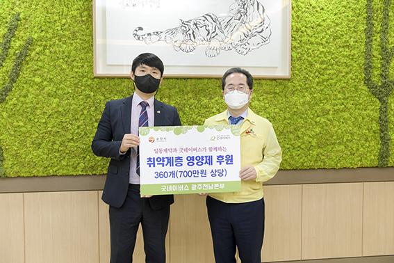 순천시는 굿네이버스 광주전남지역본부로부터 취약계층의 건강지원을 위한 700만원 상당의 영양제 360개를 기탁받았다고 20일 밝혔다.
