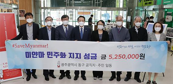 동구(청장 임택)는 군부 쿠데타로 어려움을 겪고 있는 미얀마 민주화운동을 응원하기 위해 동구청 직원과 주민들이 모금한 성금 525만 원을 전달했다고 밝혔다.