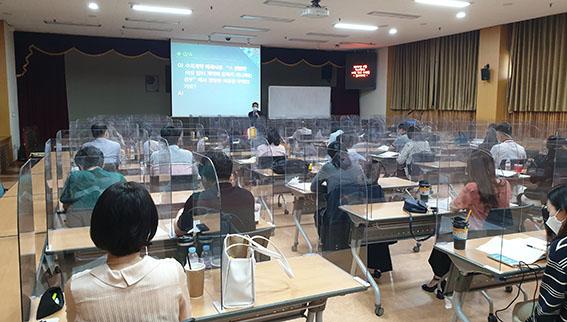 27일 광주동부교육지원청에 따르면 이번 ‘디딤돌’ 연수는 ‘공사계약 과정’을 주제로 진행됐다. 코로나19 확산 방지 및 예방을 위해 마스크 착용·거리두기 등 예방수칙을 철저히 지켰고, 하루 35명씩 총 70명이 참여했다.