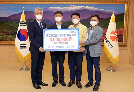 광주시는 지난달 31일 시청 비즈니스룸에서 한국주택금융공사 광주지사에서 기부금 300만원을 전달했다고 밝혔다.