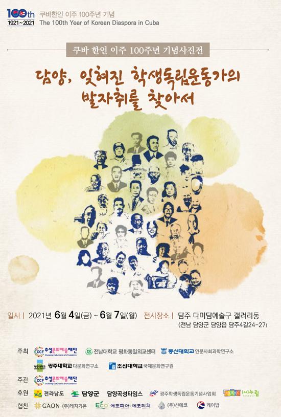 담양군은 새롭게 꾸며진 문화복합 공간인 담주 다미담예술구에서 ‘담양, 잊혀진 학생독립운동가의 발자취를 찾아’라는 주제로’쿠바 한인 이주 100주년 기념 초청 사진전’이 열린다고 2일 밝혔다.