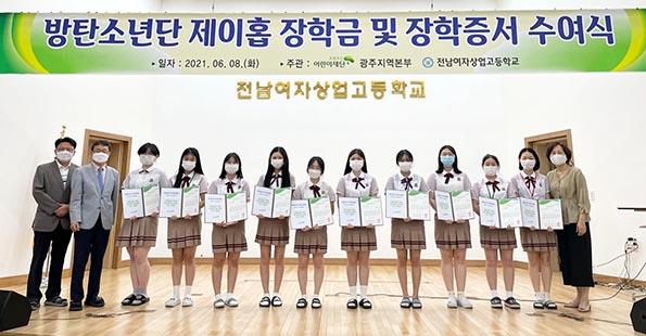 전남여상이 8일 교내 우주동인관에서 ‘방탄소년단(BTS) 제이홉 장학금’ 수여식을 개최했다.