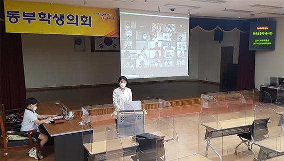 광주동부교육지원청이 지난 7일 온·오프라인 방식을 병행해 ‘2021학년도 제2회 동부초등학생의회’를 개최했다.