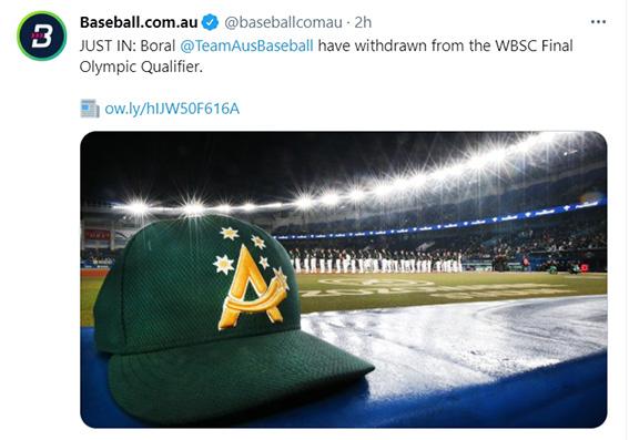 호주, 도쿄올림픽 야구 세계 최종 예선 불참. (사진 = 호주야구협회 트위터 캡처)