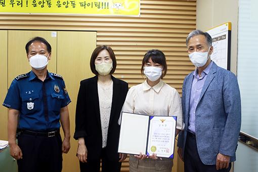 광주북부경찰서은 지난 14일 국민은행 운암동지점을 방문, 신속한 신고로 전화금융사기(보이스피싱) 피해를 예방한 은행원에게 감사장을 수여했다.