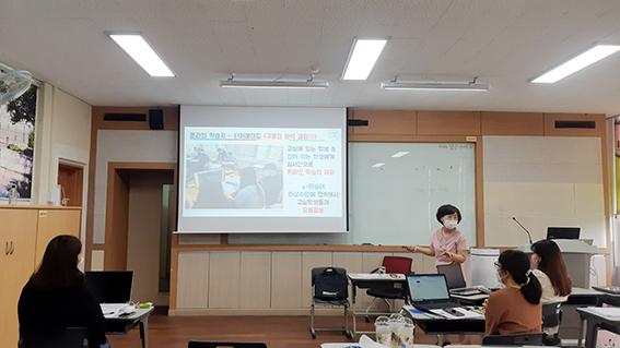 중학교 공·립 동교과·동학년 교사 간 연수를 통한 수업 나눔으로 수업을 재구성하고 있다. 특히 원격수업에 활용할 수 있는 다양한 수업 도구 공유가 인기 있다. 코로나19로 자가·자율격리된 학생에 대한 학습 공백이 우려되는 요즘 실시간으로 온라인 학습 자료를 제공해 교실 수업과 동일하게 학습이 이뤄질 수 있도록 노력하고 있다.