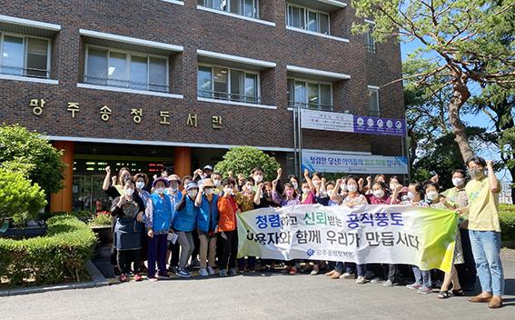 광주송정도서관이 깨끗하고 청렴한 공직 풍토 조성 및 청렴문화 확산을 위해 6월 한 달을 ‘청렴의 달’로 지정했고, 지역주민과 함께 하는 ‘청렴의 날 캠페인’을 실시했다고 20일 밝혔다.