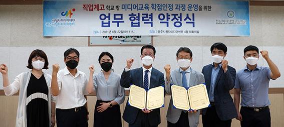 전남여상이 지난 22일 시청자미디어재단 광주센터와 ‘직업계고 학교 밖 미디어교육 학점인정 과정 운영을 위한 업무협약’을 광주센터에서 체결했다.