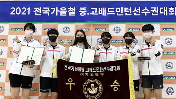 화순고는 지난 17일부터 27일까지 경북 청송에서 열린 2021 전국가을철중·고배드민턴선수권대회 여고부 단체전 결승에서 창덕여고를 3:2로 누르고 우승을 차지했다.