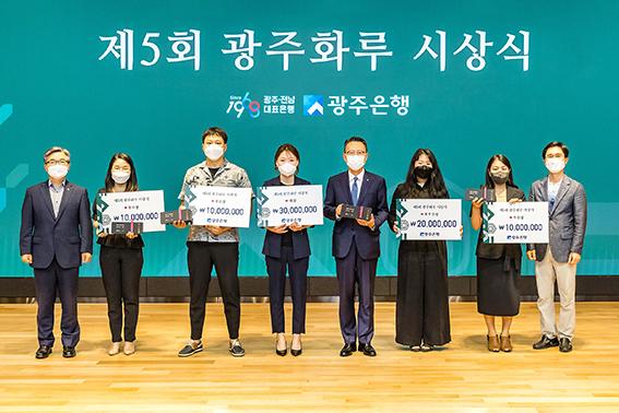 광주은행(은행장 송종욱)은 29일 '제5회 광주화루 공모전’ 시상식에서 대상 수상자인 이성경 작가를 비롯해 수상작가 5인과 입선작가 5인에 대해 시상했다고 밝혔다. (사진=광주은행 제공). 2021.06.29.