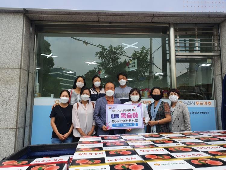 순천시는 지난달 30일 푸드마켓에서 월등면 기부나무에서 자란 복숭아 200만원 상당의 10kg 40박스 전달식을 가졌다고 밝혔다.