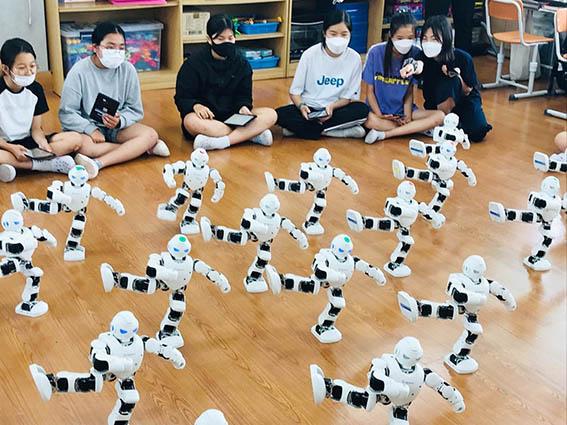 AI자율주행에 대한 한전KDN의 특강, Ozobot(오조봇)을 활용해 직접 미래도시 경로를 그리게 하는 활동, Jimm(지무)로봇 기본동작을 블록코딩을 통해 동작시키고 센서를 활용해 코딩을 해보는 활동, Alpha(알파) 로봇을 활용해 로봇 군무를 코딩으로 동작시키는 활동 등 다양한 프로그램이 진행됐다.