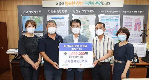 지난 1일 소아암 이웃돕기회는 강진군에 생활이 어려운 소아암 환우 및 소외계층을 지원해 달라며 100만 원을 기탁했다.