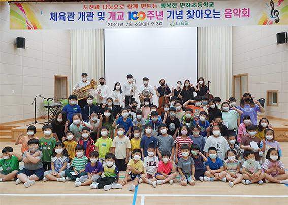 안좌초등학교는 학교의 오랜 숙원이었던 다목적체육관 준공과 개교 100주년을 기념해 지난 7월 6일 찾아오는 음악회를 개최했다.