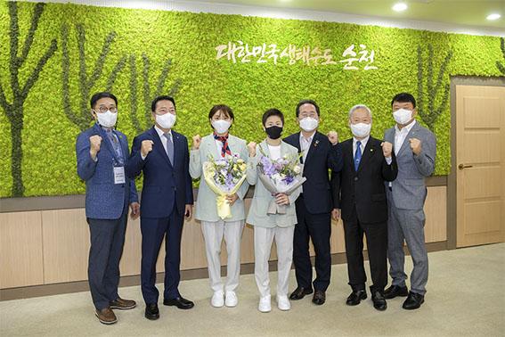 이번 도쿄올림픽에 출전하는 순천시청 소속 선수는 지난 2018 자카르타·팔렘방 아시안게임 은메달리스트인 여자유도 -52kg급의 박다솔 선수와 -48kg급의 강유정 선수 총 2명이다.