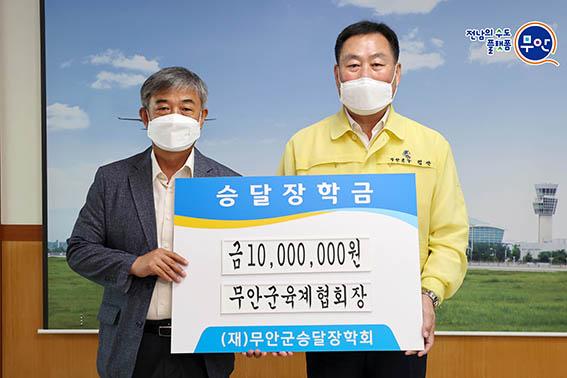 무안군은 지난 12일 육계협회 무안지부에서 승달장학회에 장학금 1000만원을 기탁했다고 밝혔다.