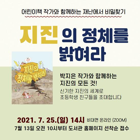 1차 교육 참여 신청은 13일부터이며, 시립도서관 홈페이지 게시판에서 수강신청이 가능하다. 1차 강연은 ‘지진의 정체를 밝혀라’의 저자 박지은 작가를 모시고 ‘재난에서 비밀찾기’라는 주제로 비대면 온라인(ZOOM)으로 지진의 이유와 대처법, 지진 경보장치 만들기 체험으로 운영한다.