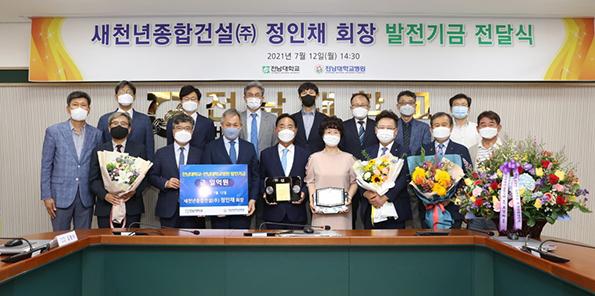 새천년종합건설 정인채 회장이 전남대학교와 전남대학교병원에 발전기금 1억 원을 기탁했다.