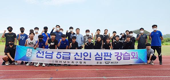 전남도축구협회는 지난달 19일부터 27일까지 주말을 이용해 해남중, 광양여고, 전남과학대 등 도내 학생 선수 60여 명이 참석한 가운데 대한축구협회 5급 축구심판 자격증코스를 개최했다고 밝혔다.