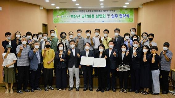 광양교육지원청은 지난 13일 백운산 프라자 대회의실에서 학교와 마을학교, 지자체, 유학 농가 관계자를 모시고 ‘Sunshine! 백운산 유학마을’ 설명회 및 업무 협약식을 개최했다.