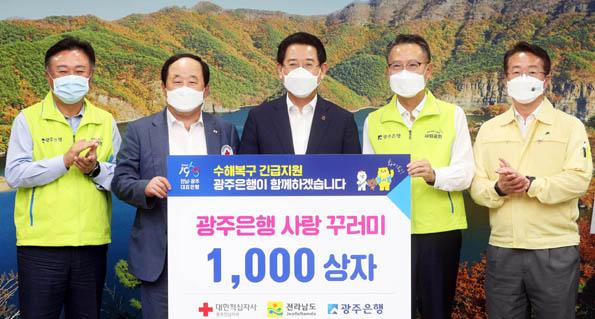 광주은행은 지난해에 이어 두 번째로 수해 주민을 위해 5000만 원 상당의 사랑꾸러미 1천 상자를 마련해 지역사회공헌에 동참했다.