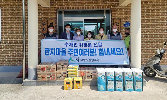 광양시산림조합은 지난 5일과 6일 집중호우로 피해가 컸던 진상면 탄치마을 이재민들을 찾아 위로하고, 구호물품을 진상면사무소에 전달했다.