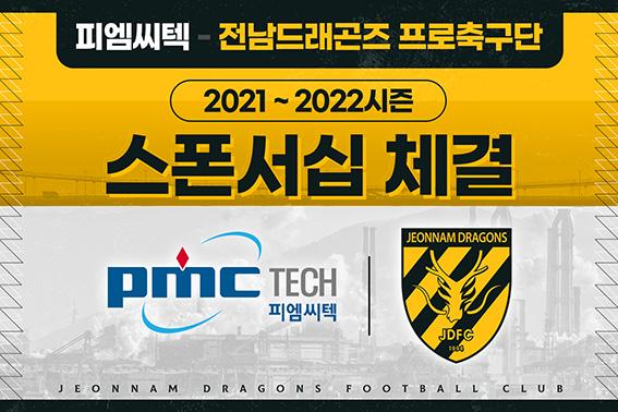 전남드래곤즈가 탄소소재 전문기업인 피엠씨텍과 스폰서십을 체결하고 2022년까지 함께하기로 했다.