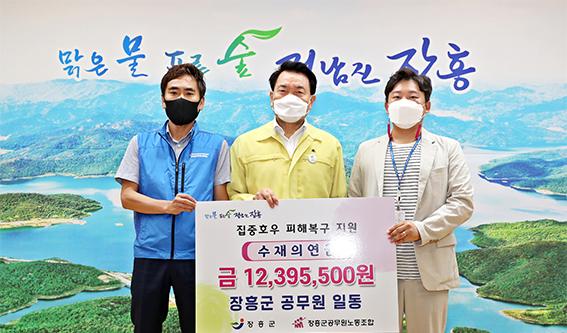 장흥군 소속 공직자들이 집중호우로 큰 피해를 입은 관내 수재민들을 위해 수재의연금 1239만 원을 기부했다.