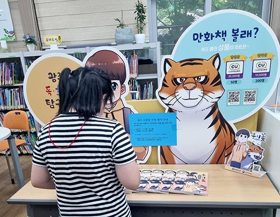 19일 광주송정도서관에 따르면 이번 행사를 위해 만화도서 ‘종이꽃 기억할게요’ 10권과 홍보 입간판 등을 광주지방보훈청으로부터 기증받아 어린이실에 비치했다. 도서 및 e-book 홍보, 해당 도서를 활용한 온라인 퀴즈 참여를 독려하는 체험존을 운영하고 있다.