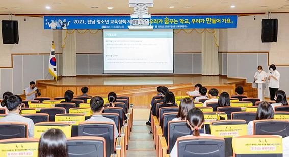 21일 전남교육연구정보원 교육정책연구소에 따르면 전날 전남교육연구정보원 합동강의실에서 '2021 전남 청소년 교육정책 제안마당'을 개최했다.