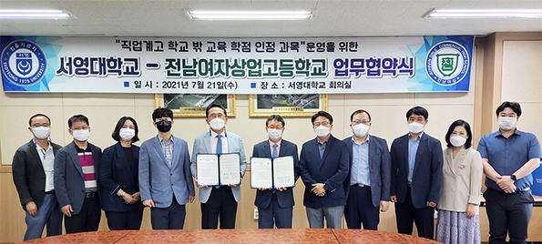 전남여상과 서영대가 21일 ‘직업계고 학교 밖 교육 학점 인정 과목 운영을 위한 업무협약’을 서영대에서 체결했다.
