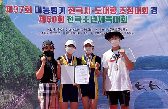광주체육중 조정부가 25일 장성호 조정경기장에서 열린 제37회 대통령기 전국시·도 대항 조정대회 겸 제50회 전국소년체육대회 여중부 더블스컬 종목에서 금메달을 획득했다.