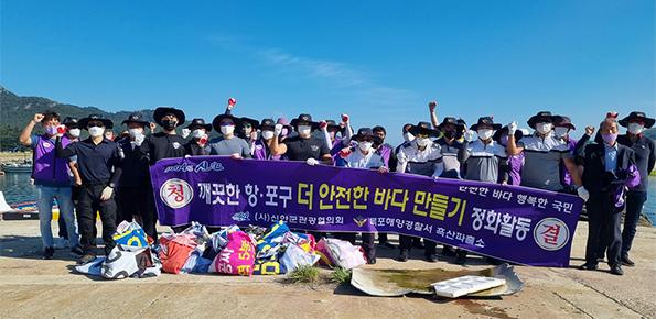 목포해양경찰서 흑산파출소는 최근 해양오염 방지 및 어족자원 보호를 위해 코로나19 방역수칙을 철저히 준수한 가운데 유관기관과 합동으로 신안군 흑산면 예리항과 진리항 해안가 일대에서 정화활동을 펼치며 항내 폐그물 및 쓰레기 등 약 1.5톤을 수거했다.
